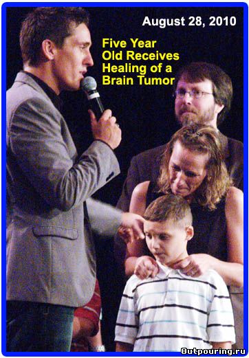 Во время собрания пробуждения 19 августа, Томас рассказывает – “Моррис сказал в микрофон, что Бог уменьшает опухоль мозга.” “Я просто знала, что это для моего Калеба” – сказала она”.