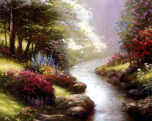 Впервые я смогла поближе рассмотреть растительность рая. Трава выглядела такой же, как и на земле, но ее свойства, несомненно, были другими. Можно было пройти по ней, и она возвращалась в прежнее состояние после того, как была примята. (10) Около ручья было несколько оформленных цветочных клумб, но опять-таки, это были не такие цветы, какие есть на земле. Они были совершенны. Я растянулась всем телом у кромки воды и опустила руку в ручей. Было прохладно. «Но вода ли это?» – задала я себе вопрос. «Наверное, нет, – подумала я, – похоже, это свет». Группа ангелов пролетела над моей головой. Они летели клином, как стая гусей. Когда я повернулась, чтобы посмотреть в воду, я увидела еще чье-то отражение рядом с моим.