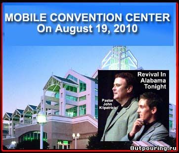 Начиная с середины августа, он рассказал что тысячи людей стекаются на собрания пробуждения, которые проводятся четыре раза в неделю в Конференц-Центре в Мобайл(Mobile Convention Center), штат Алабама, где в настоящее время руководит Джон Килпатрик в церкви Church of His Presence.